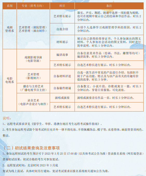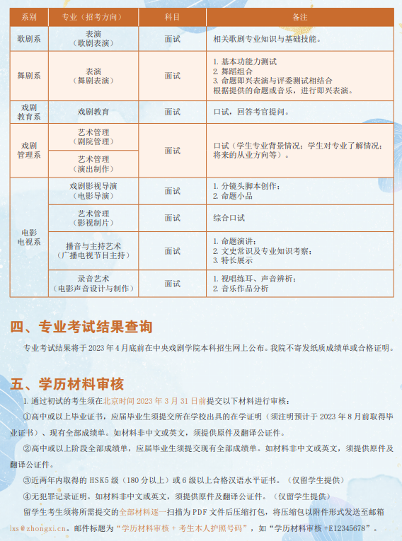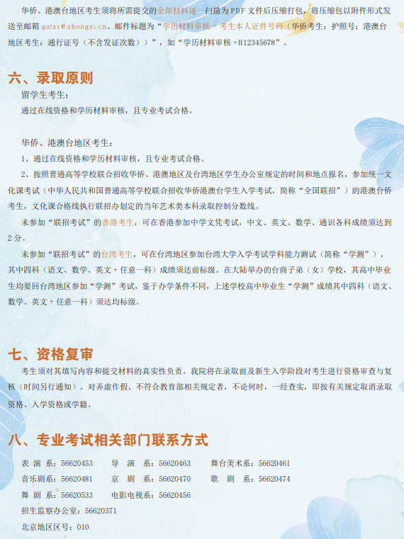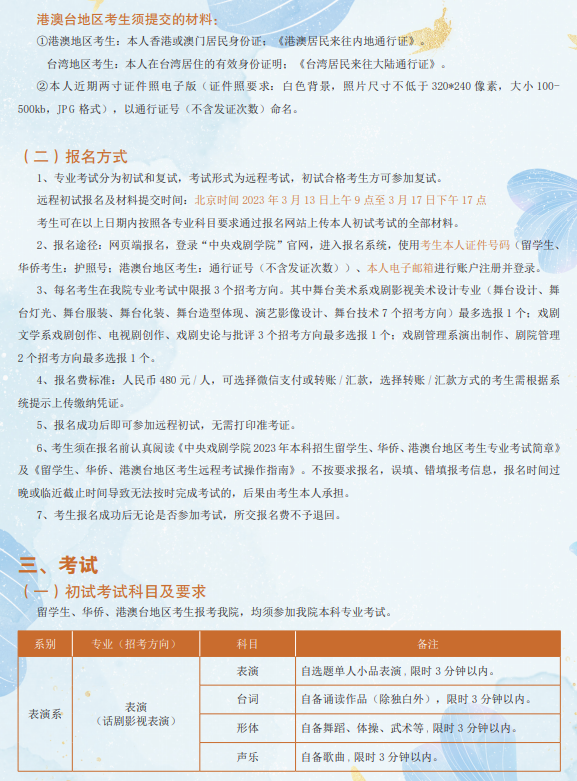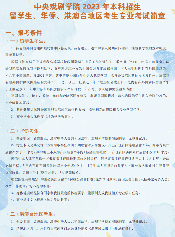 中央戏剧学院2023年本科招生留学生、华侨、港澳台地区考生专业考试简章